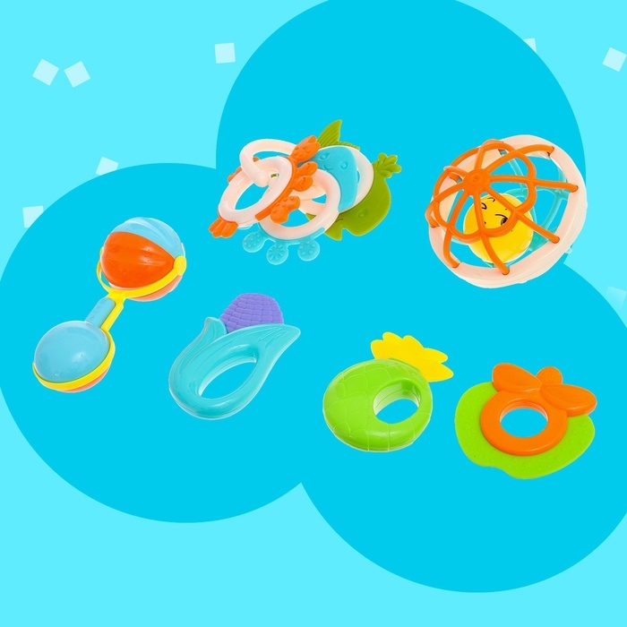 Набор погремушек с прорезывателями для зубов, 9 предметов