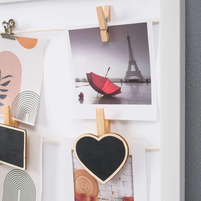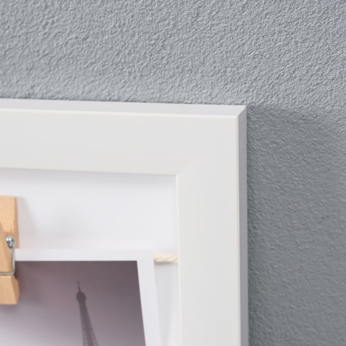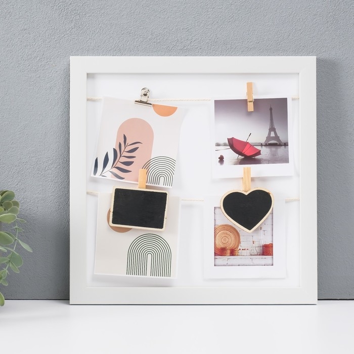 Фоторамка пластик на 4 фото 10х10 см "Стиль" с прищепками, белая 30х30х1,5 см