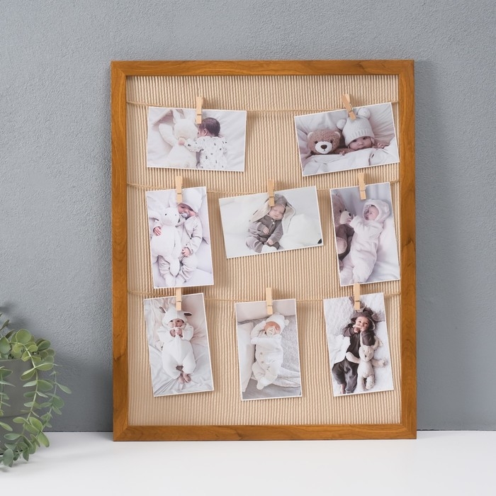 Фоторамка пластик на 8 фото 9х13 см "Крафт" с прищепками 50х40х1,2 см