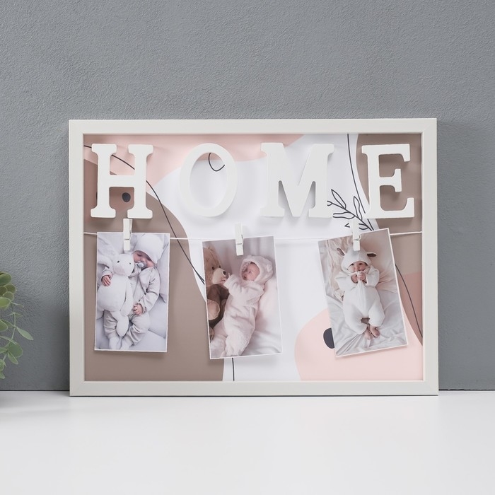 Фоторамка пластик на 3 фото 9х13 см "Дом" с прищепками, белая 40х30х2 см