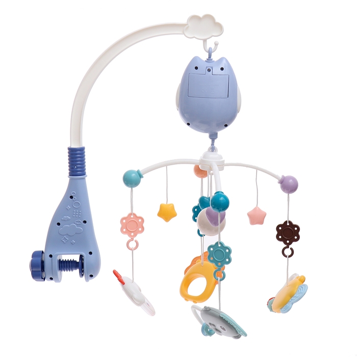 Мобиль музыкальный «Песенки совушки», на батарейках, цвет голубой