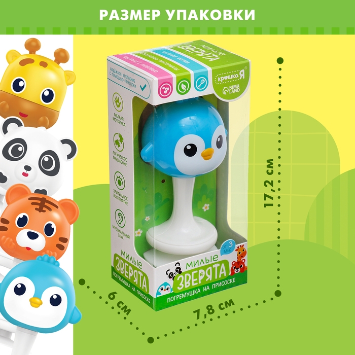 Погремушка «Милые зверята: Пингвин», на присоске