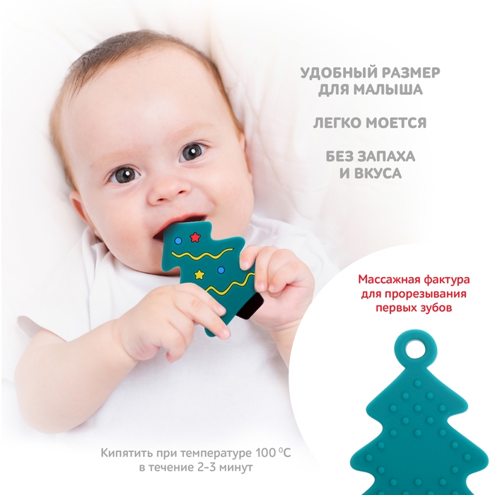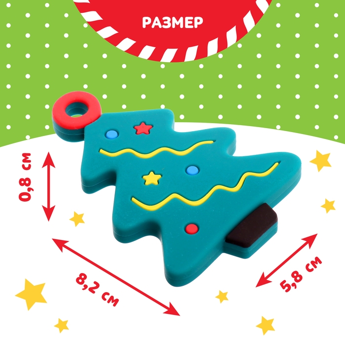 Новогодний прорезыватель для зубов «Ёлочка», с держателем, цвет зелёный