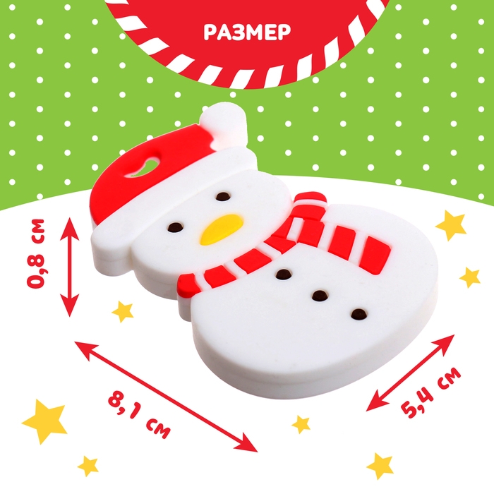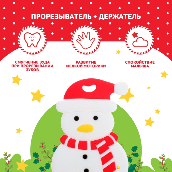 Новогодний прорезыватель для зубов «Снеговик», с держателем, цвет белый
