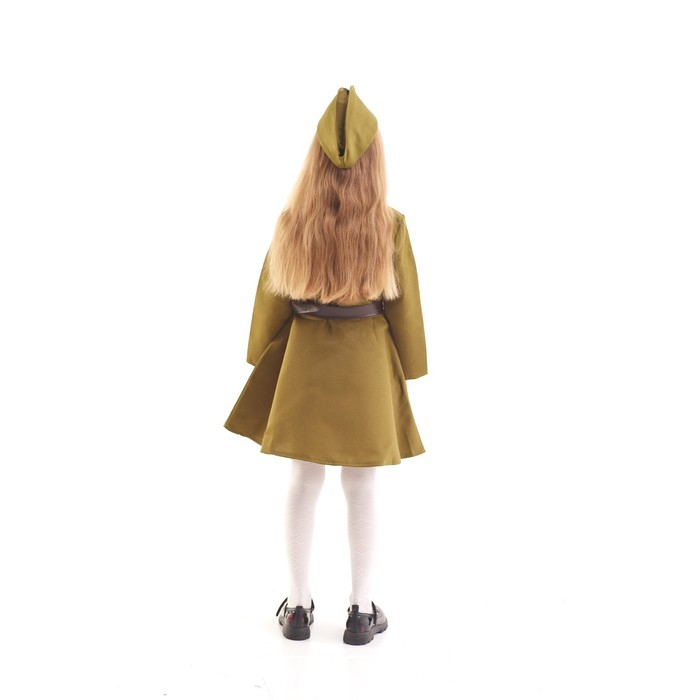 Карнавальный костюм для девочки, военное платье, пилотка, ремень, 8-10 лет, рост 140-152 см