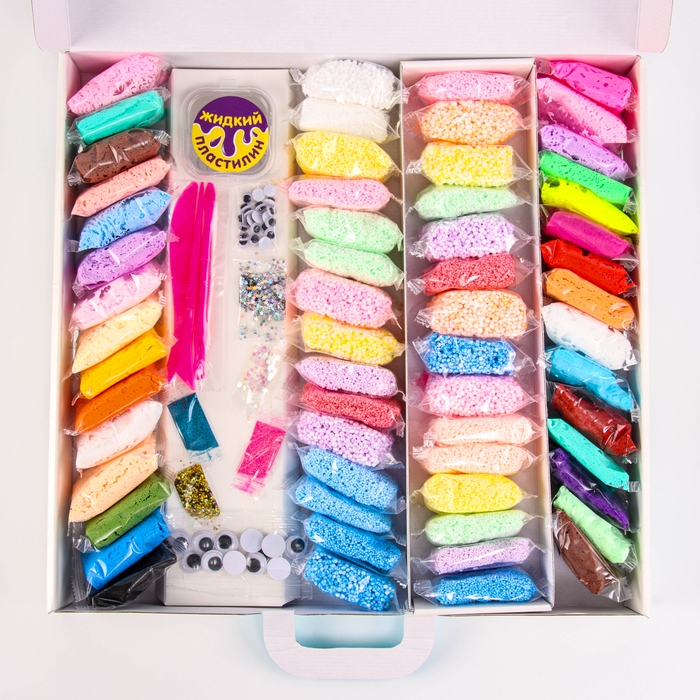- В набор входят три вида пластилина: легкий, шариковый и жидкий, что позволяет создавать уникальные поделки.