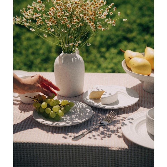 - Элегантный дизайн: минималистичный белый цвет и рельефная текстура привносят стиль и утонченность в любую сервировку.