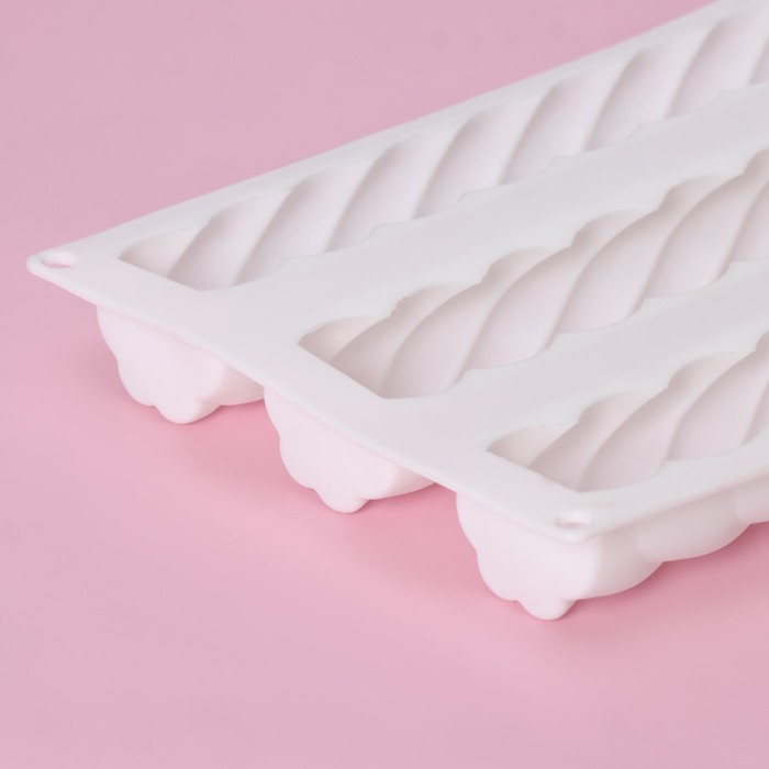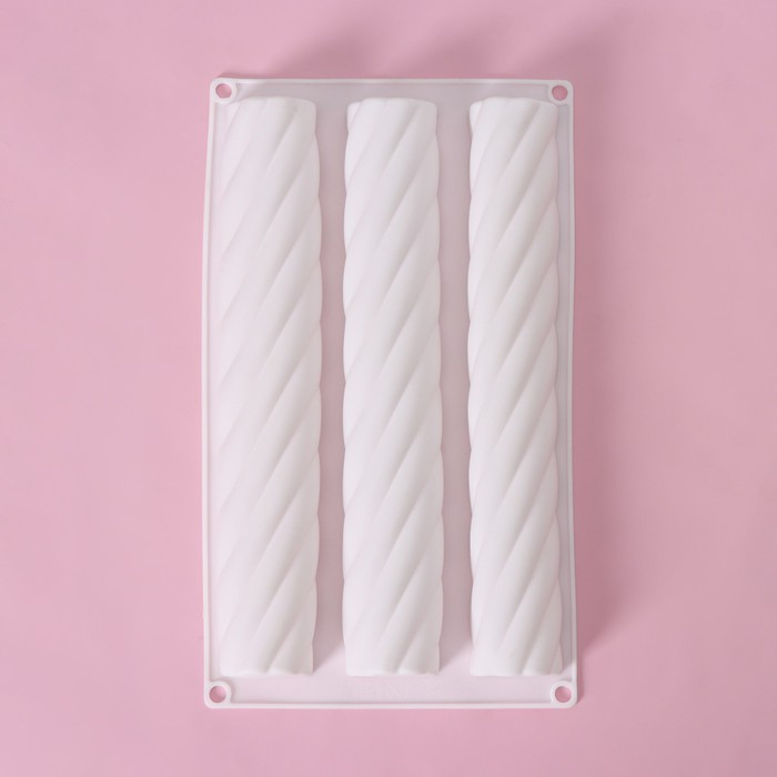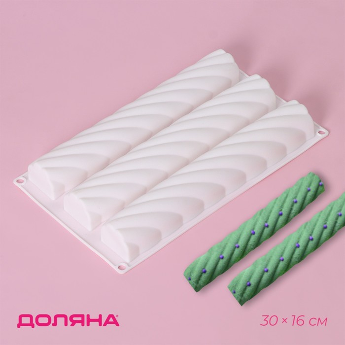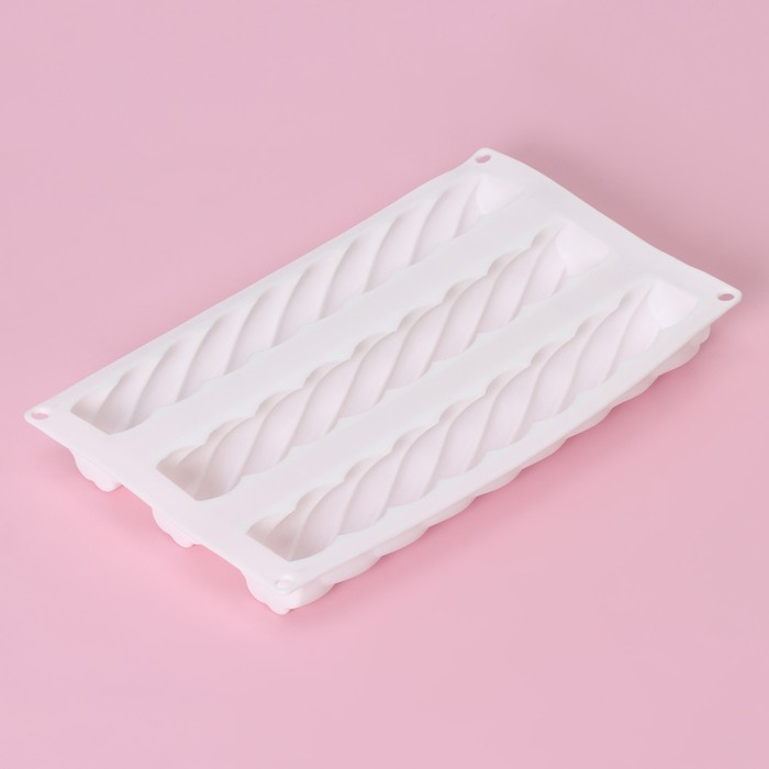 Форма для муссовых десертов и выпечки Доляна «Жгут», силикон, 30×17,5×3,5 см, 3 ячейки (26,7×4,3 см), цвет белый