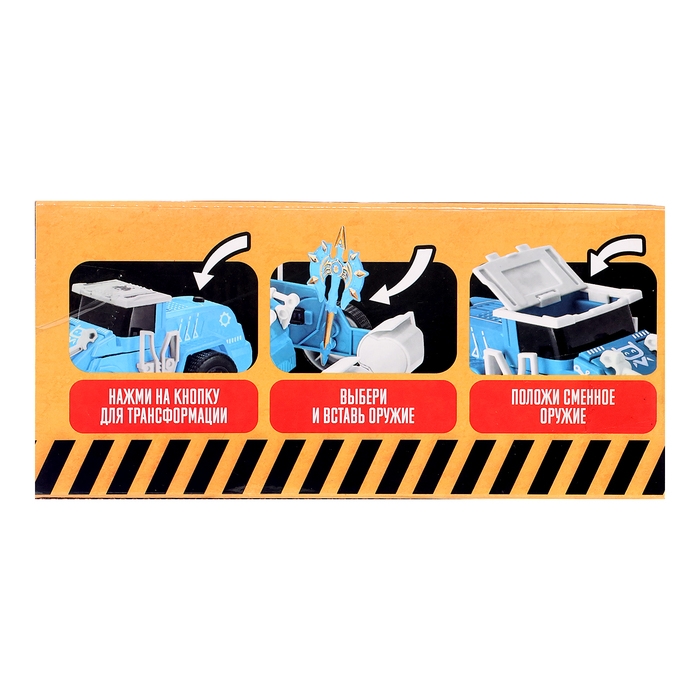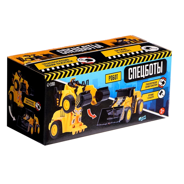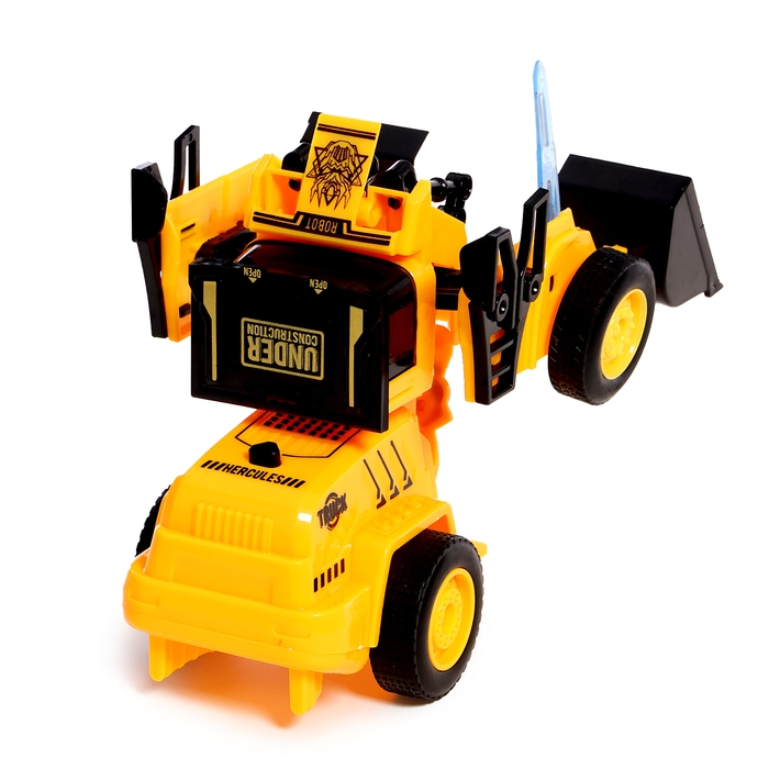 Робот «Погрузчик» поможет малышу в строительных работах. Он способен поднимать и перемещать груз любой тяжести. Благодаря функции трансформации при столкновении он превращается из робота в настоящий строительный трактор.