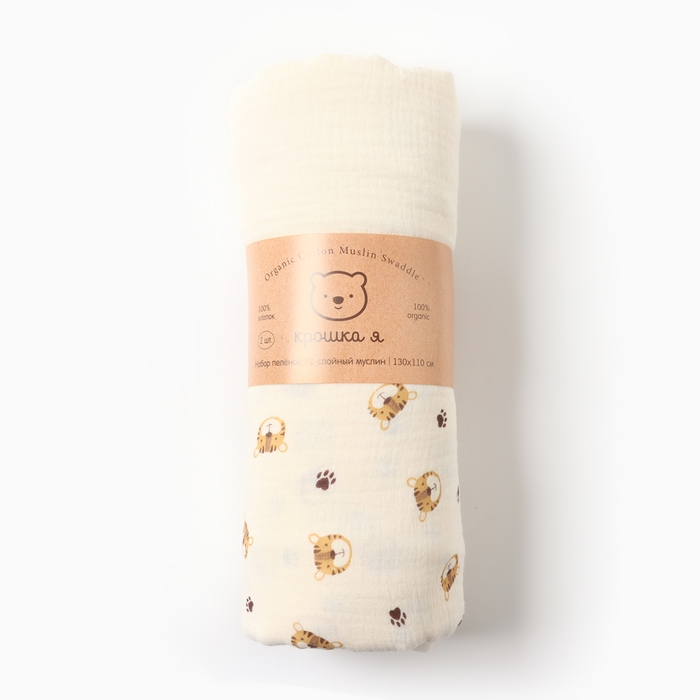 Набор пеленок Крошка Я Tiger 130х110см - 2 шт, муслин, 100% хлопок