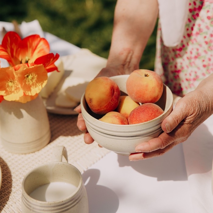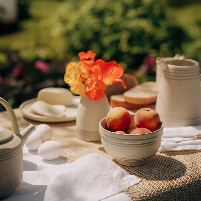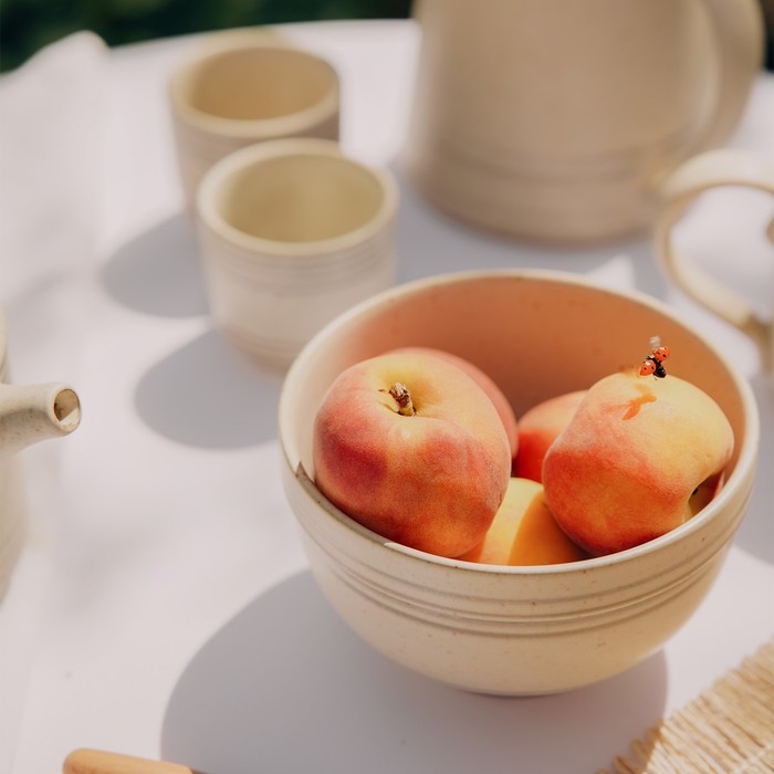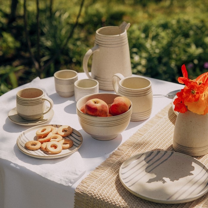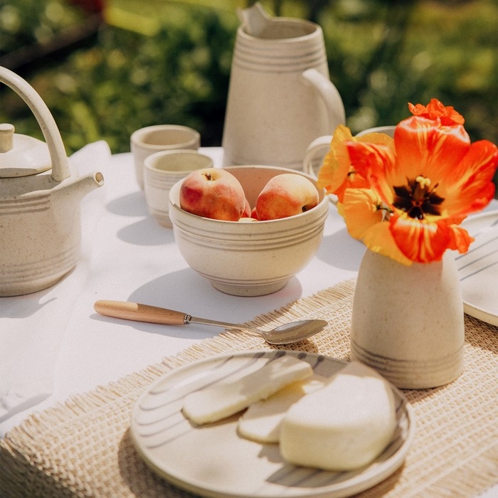 - Универсальный дизайн: Нейтральный бежевый оттенок и полосатый узор создают приятный визуальный эффект, делая посуду идеальной для любого случая – от повседневных обедов до праздничных ужинов.