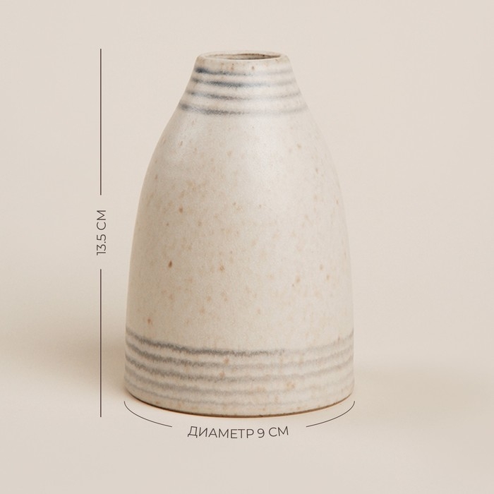 Бежевый оттенок и тщательно продуманное оформление вазы делают её идеальной для любого интерьера. С высотой 13,5 см и компактными размерами 9х9 см, она идеально подходит как для сервировки стола, так и для хранения мелких предметов, создавая атмосферу уюта и гармонии.