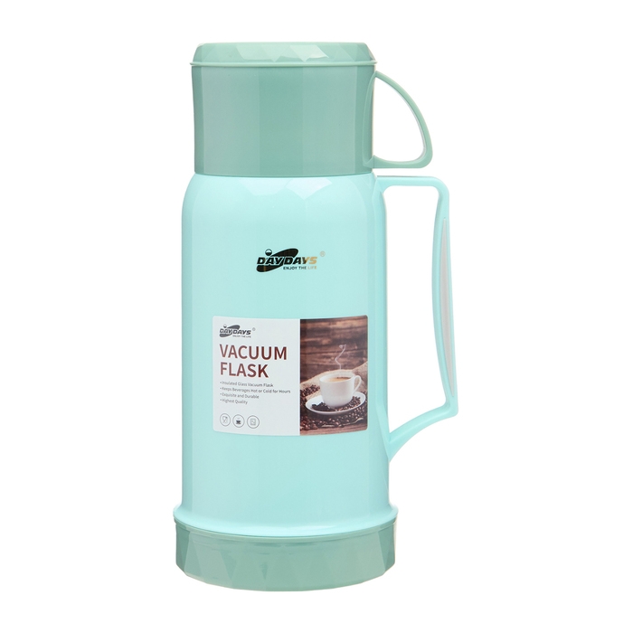 Термос 1 л, со стеклянной колбой, сохраняет тепло 12 ч, с кружкой, салатовый