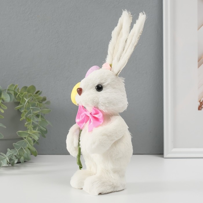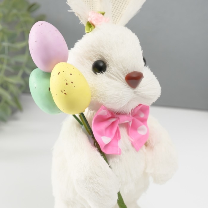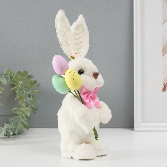 Сувенир "Белая зайка с розовым бантом и пасхальными яйцами" 12х12,5х25 см