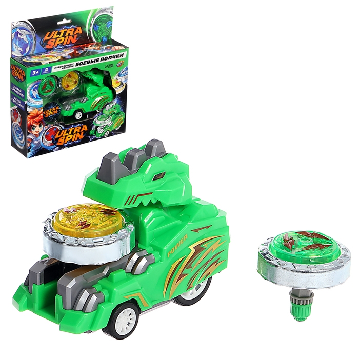 Набор волчков ULTRA SPIN «Дино», с устройством запуска, цвет зеленый