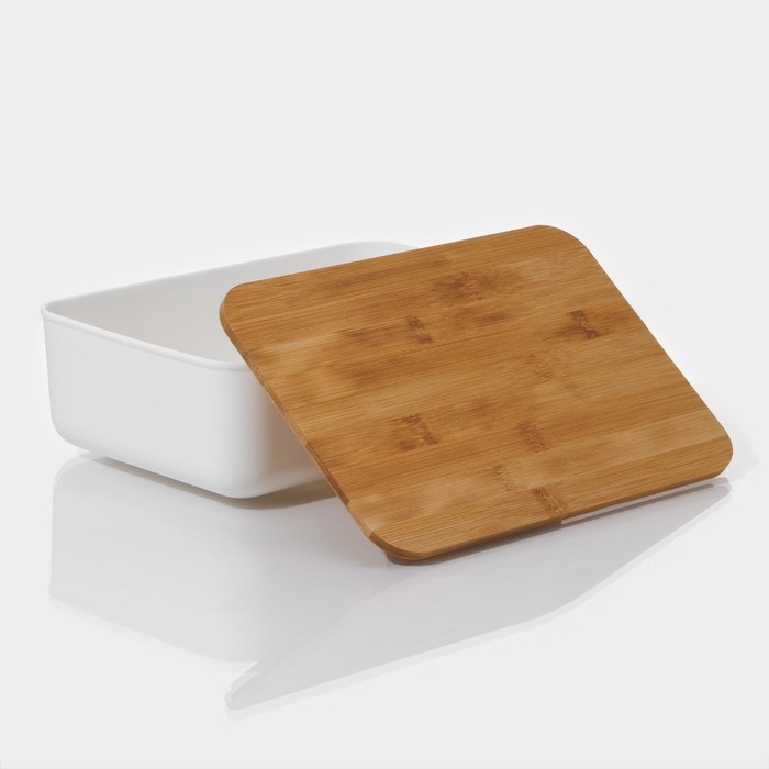 Контейнер оснащен плотной крышкой, которая надежно защищает содержимое от попадания пыли, влаги и грязи. Кроме того, крышка из бамбука придает контейнеру стильный и современный вид.