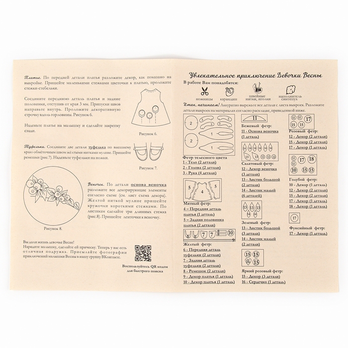 Набор для создания куклы из фетра «Девочка Весна», высота — 15 см