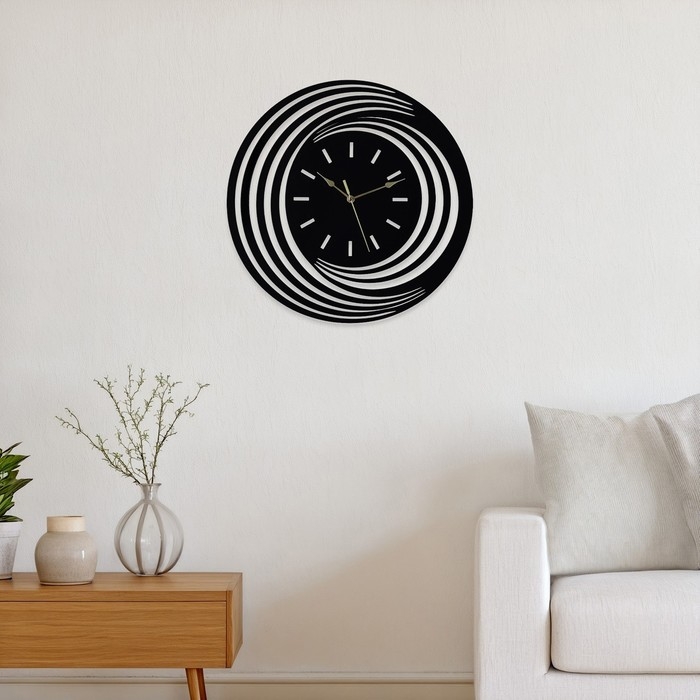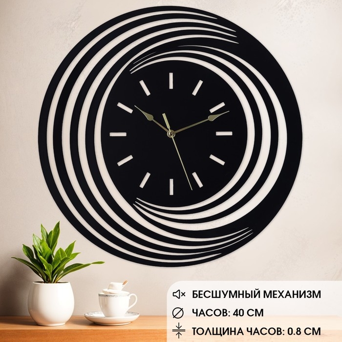 Эти стильные настенные часы станут прекрасным дополнением к любому интерьеру. Выполненные из качественного металла, они обеспечивают долгий срок службы и надежность. Дизайн часов отличается плавными линиями, что придает им современный и элегантный вид. Диаметр часов составляет 40 см, что позволяет легко читать их с любого расстояния. Благодаря плавному ходу механизма, вы не услышите тиканья, а время будет отображаться точно и четко. Идеально подходят для любых помещений, будь то офис, квартира или загородный дом.