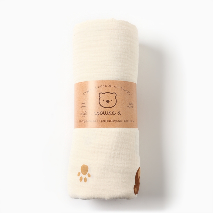 Набор пеленок Крошка Я Bear 130х110см - 2 шт, муслин, 100% хлопок