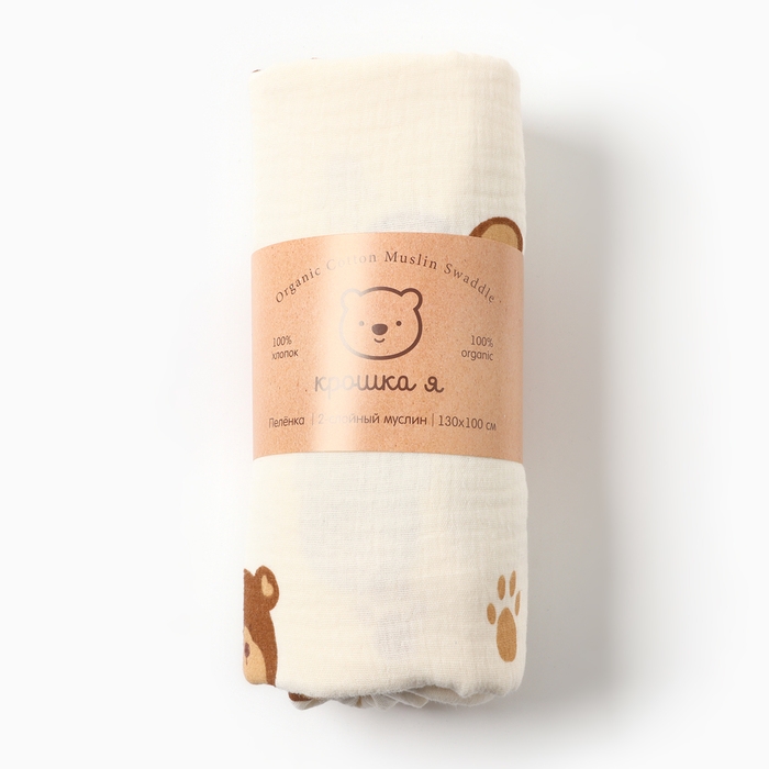 Пеленка двухслойная Крошка Я Bear, 130х100см, муслин,100% хлопок