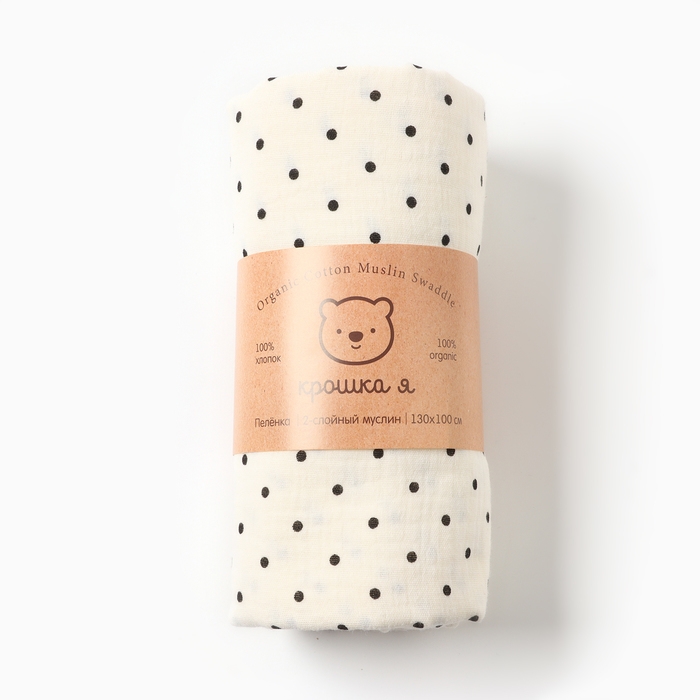Пеленка двухслойная Крошка Я "Горошки", 130х100см, муслин,100 % хлопок