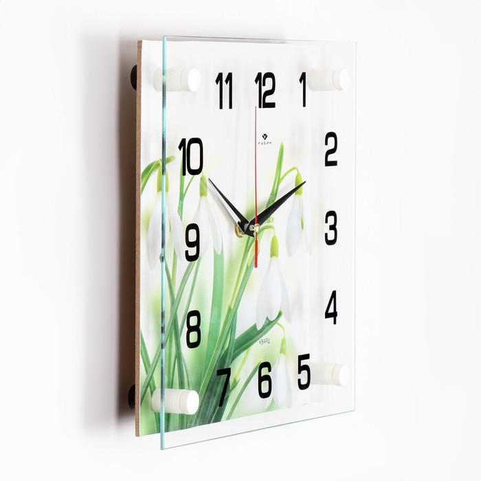 Часы настенные: Цветы, "Подснежники", бесшумные, 25 х 25 см