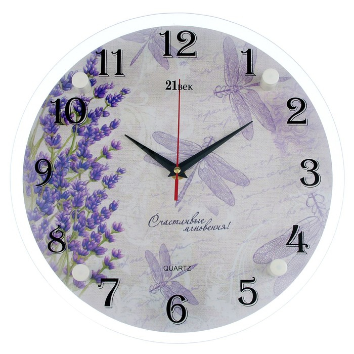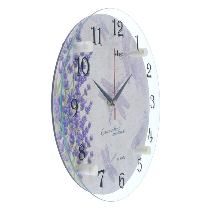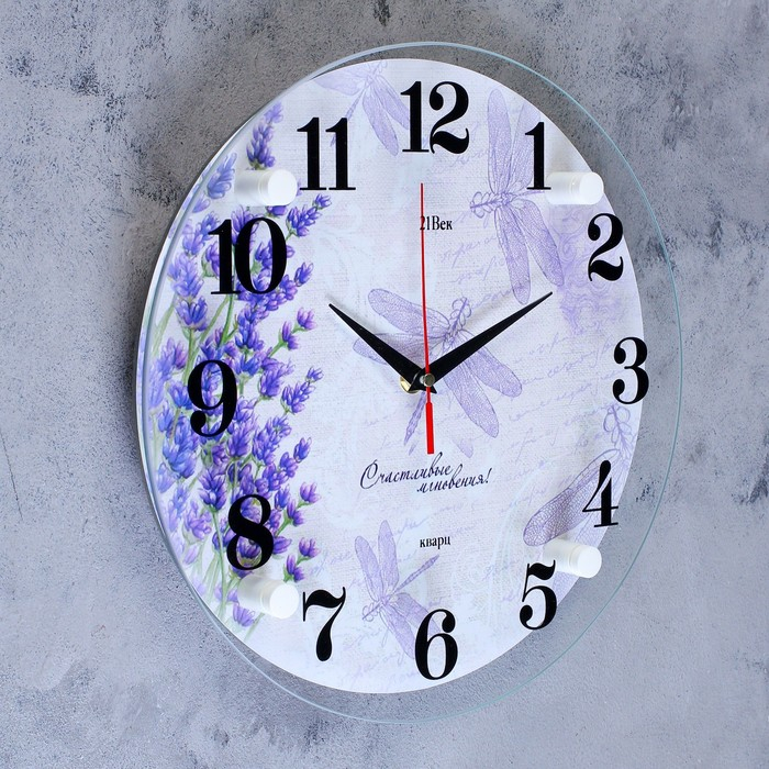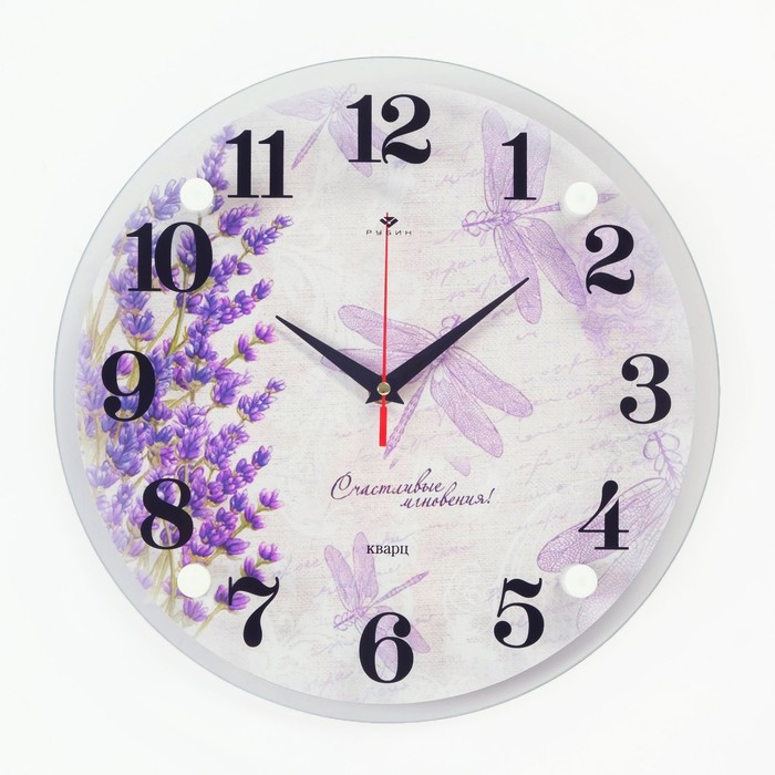 Часы настенные, интерьерные: Цветы, "Стрекозы", бесшумные, d-30 см