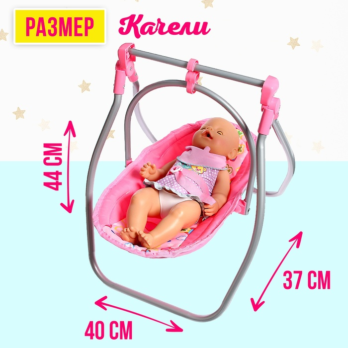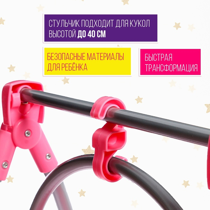 Стульчик для кормления куклы до 40 см, трансформер 3в1: стульчик, качели, переноска