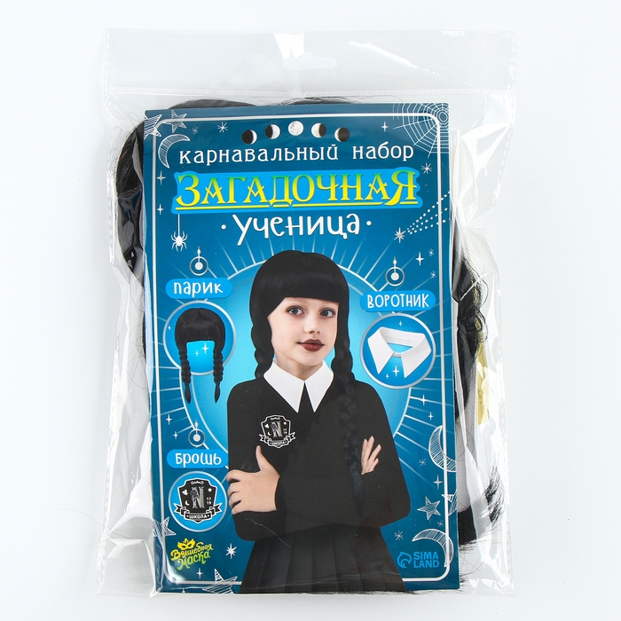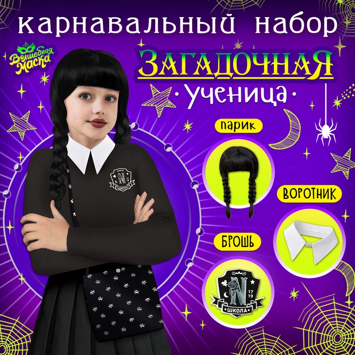 Карнавальный набор «Загадочная ученица»: воротник, парик с чёлкой, брошь