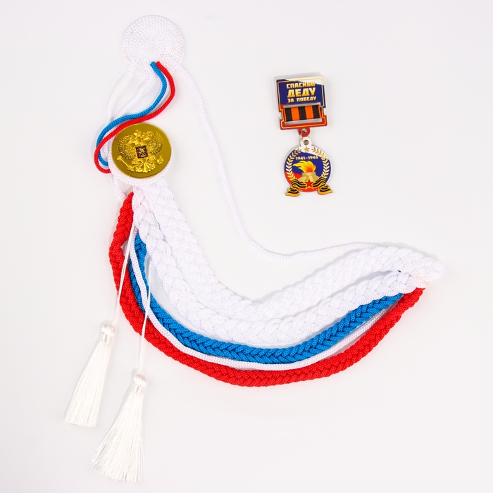 Карнавальный набор «На парад победы»: аксельбант, значок, цвет триколор