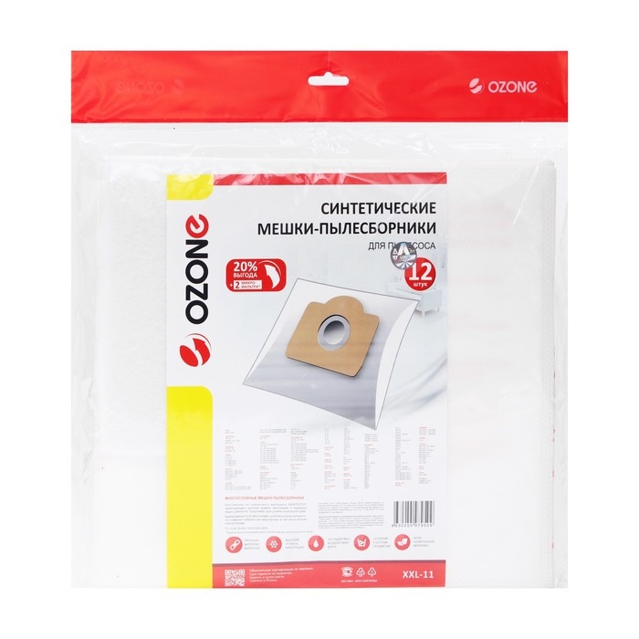Мешок-пылесборник XXL-11 Ozone синтетические для пылесоса, 12 шт + 2 микрофильтра