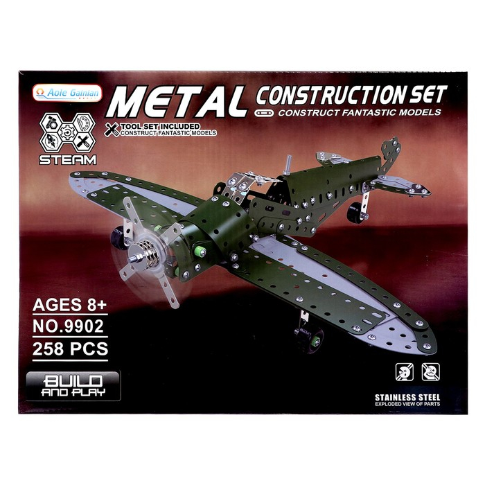 Конструктор металлический «Самолёт бомбардировщик», 258 деталей