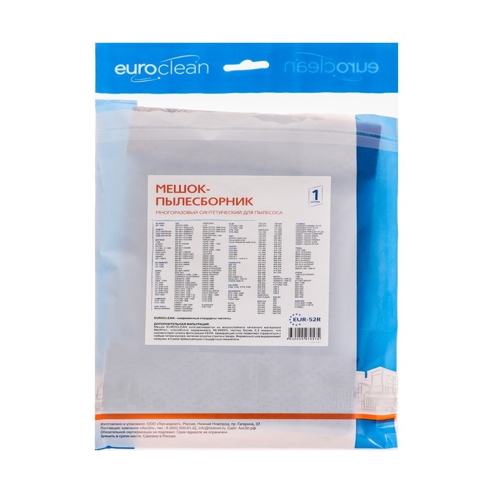Мешок-пылесборник EUR-52R Euroclean — это многоразовое изделие, предназначенное для использования в пылесосах. Он изготовлен из прочного и долговечного материала, который обеспечивает эффективную фильтрацию воздуха от пыли и грязи.