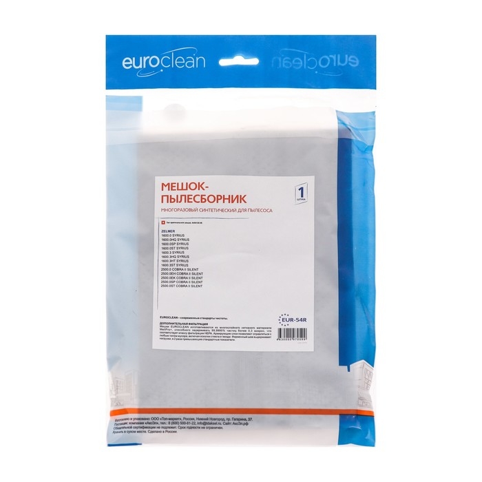 Мешок-пылесборник EUR-54R Euroclean — это многоразовое изделие, предназначенное для использования в пылесосах. Он изготовлен из прочного и долговечного материала, который обеспечивает эффективную фильтрацию воздуха от пыли и грязи.