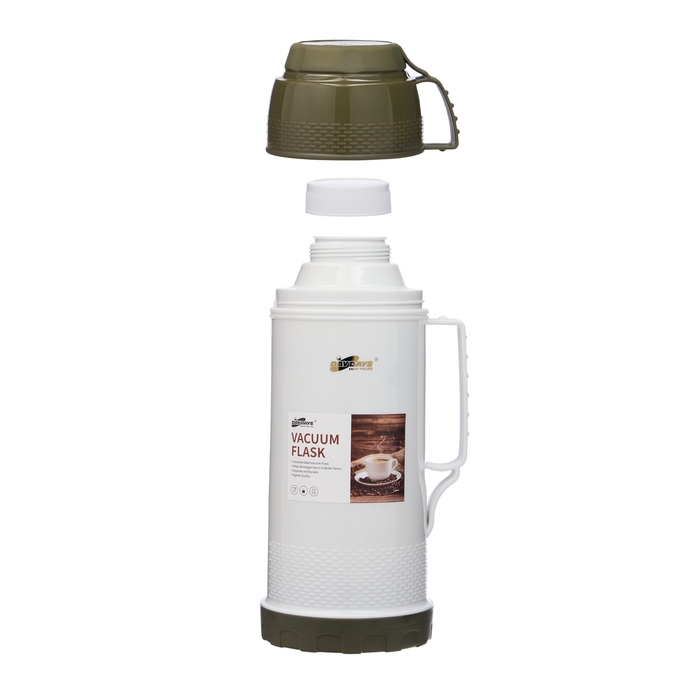 Термос 1.8 л, со стеклянной колбой, сохраняет тепло 12 ч, с кружкой, зелёный