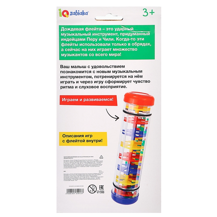Развивающий набор «Дождевая флейта» поможет малышу от 3 лет потренировать логическое мышление, координацию движений и воображение.