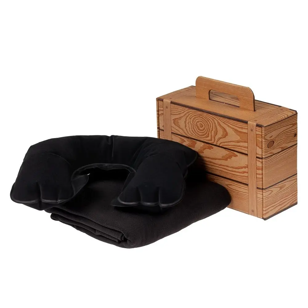 Надувная подушка под шею и уютный флисовый плед — необходимымй минимум для каждого путешественника.
