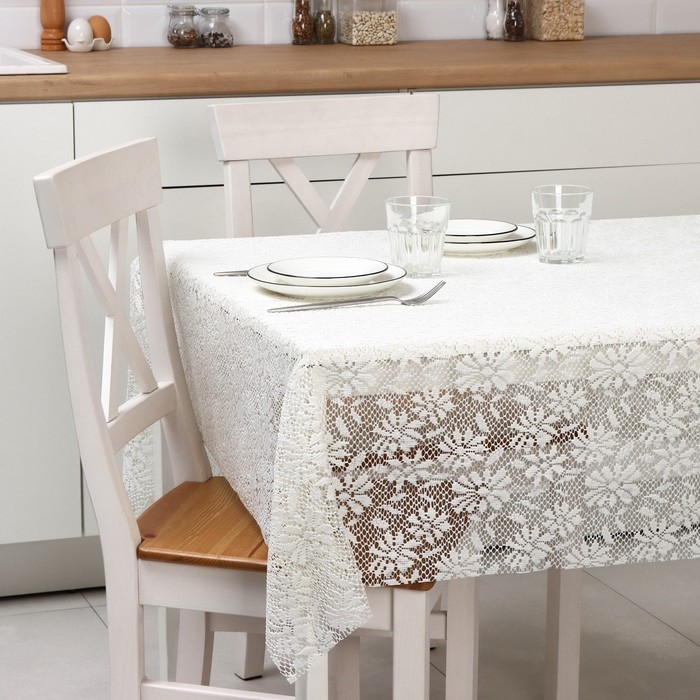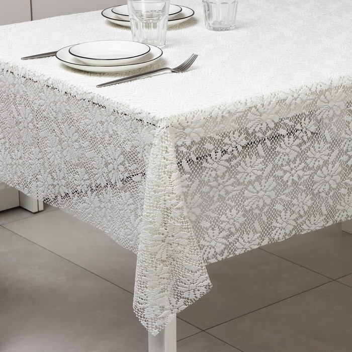 Скатерть на нетканой основе многоразовая с кружевом «Кружево», 130×140 см