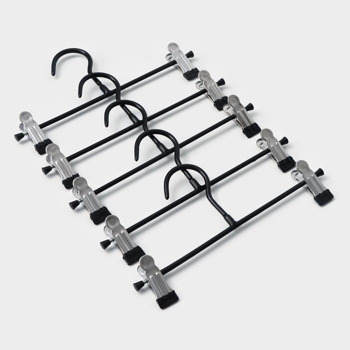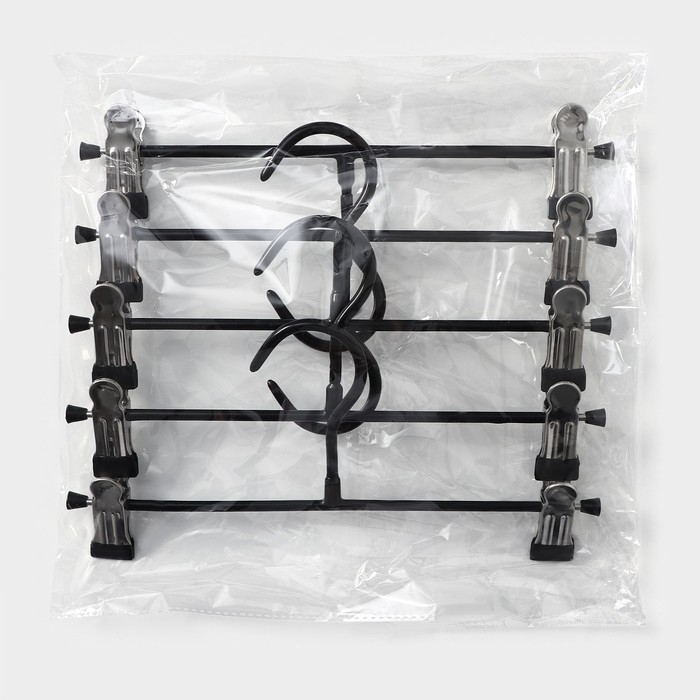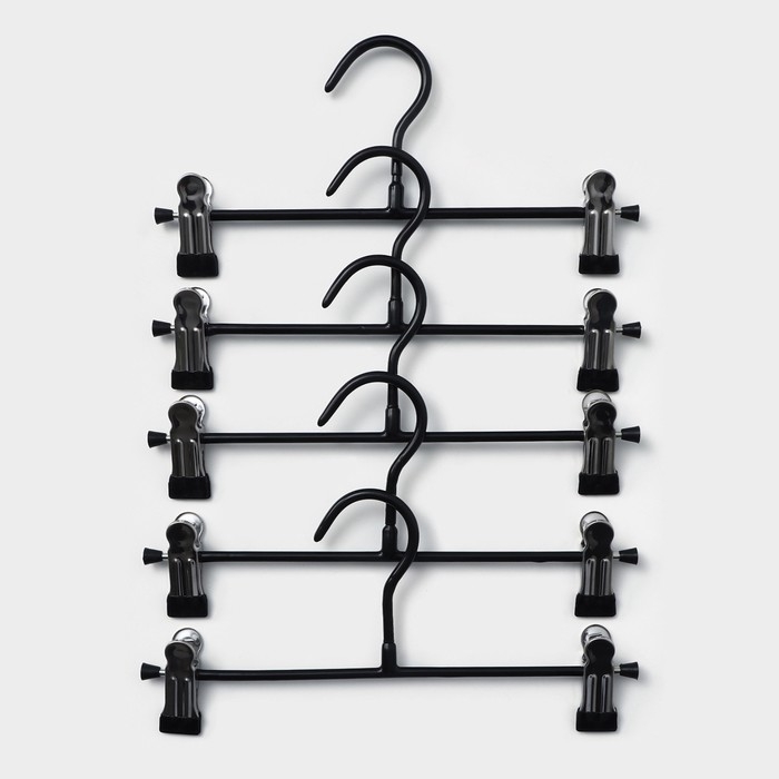 Вешалки для брюк и юбок, с зажимами, 5 шт, 26×13 см, цвет чёрный