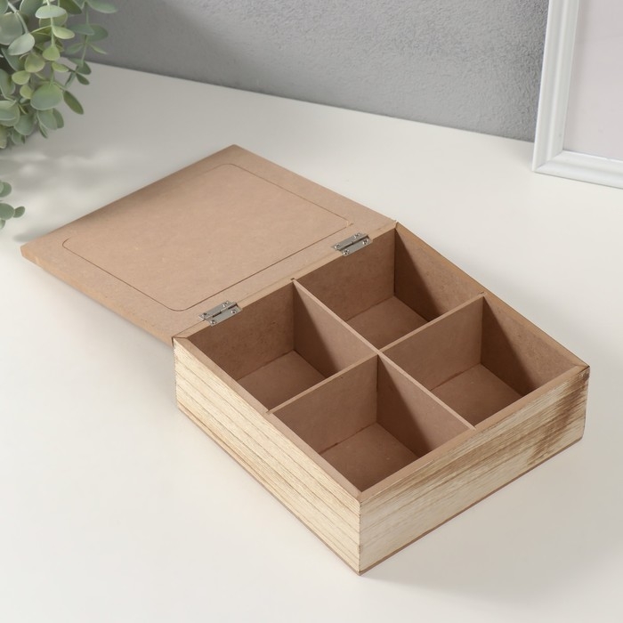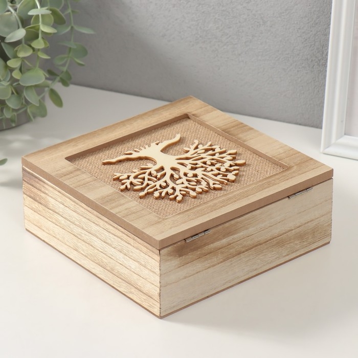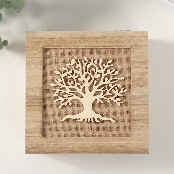 Шкатулка дерево с делениями "Древо жизни" мешковина 18х18х7 см