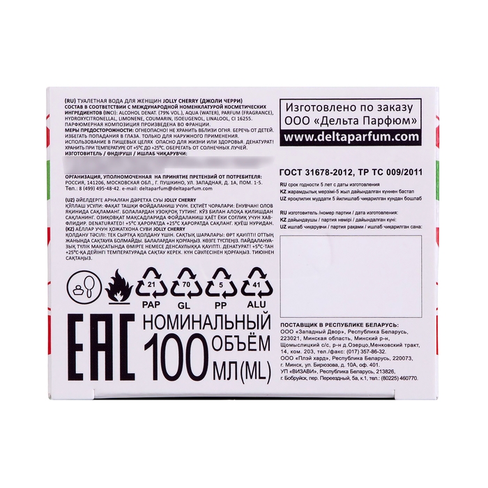 Туалетная вода женская Jolly Cherry (по мотивам Escada Cherry In The Air), 100 мл