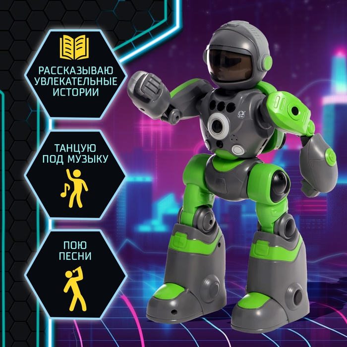 С роботом «Кибер-бот» ребёнок отправится покорять космические просторы! Игрушка станет верным спутником и сделает межгалактические приключения захватывающими и незабываемыми благодаря своим суперспособностям. Робот умеет танцевать и рассказывать увлекательные истории.
