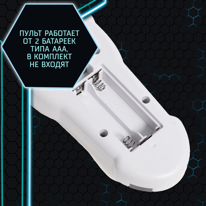 - Пульт управления работает от 2 батареек типоразмера ААА (нет в комплекте).