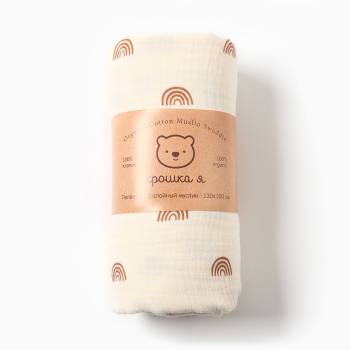 Пеленка двухслойная Крошка Я Rainbow, 130х100см, муслин,100 % хлопок