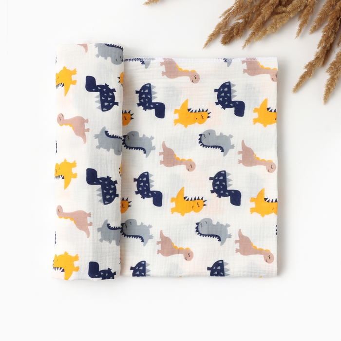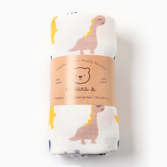 Пеленка двухслойная Крошка Я Dino, 130х100см, муслин,100 % хлопок