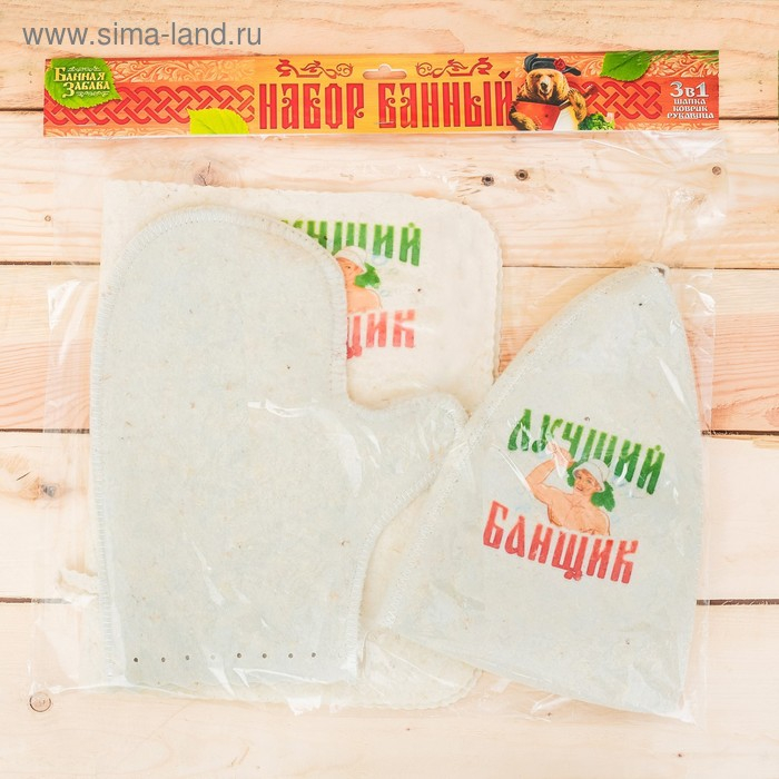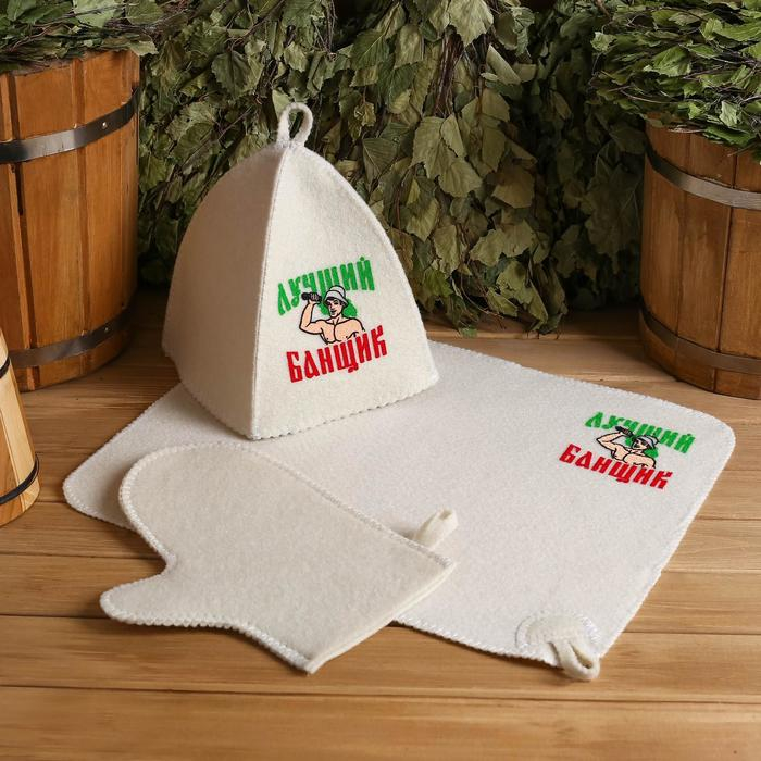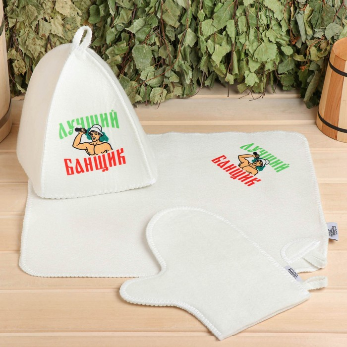 Банный набор: шапка, коврик и рукавица "Самому лучшему банщику"
