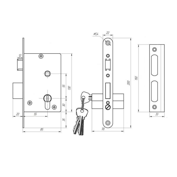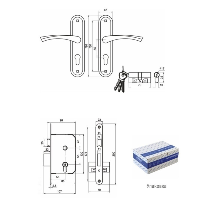 Замок врезной Димитровград "Зенит" ЗВ4-3.08, м/о, с ручкой