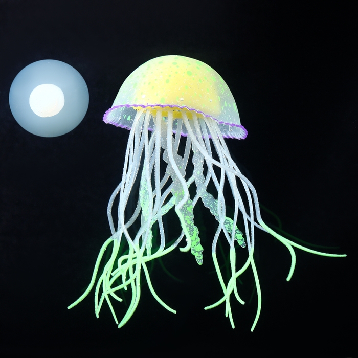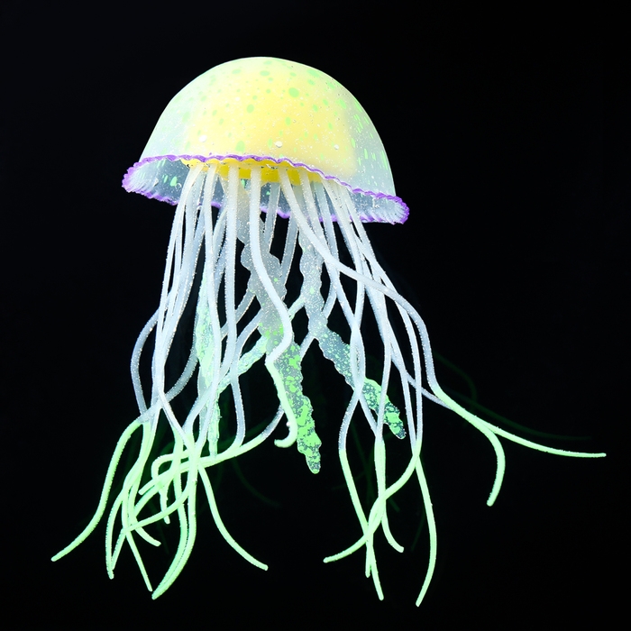 Декор для аквариума "Медуза", силиконовая, флуоресцентная, 6,5 х 6,5 х 11,5 см, зелёная