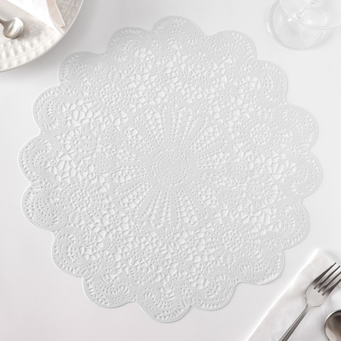 Салфетка сервировочная на стол «Манифик», d=38 см, цвет серебряный