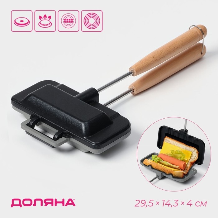 Сковорода двусторонняя для выпечки сэндвичей Доляна, 29,5×14,3×4 см, с антипригарным покрытием